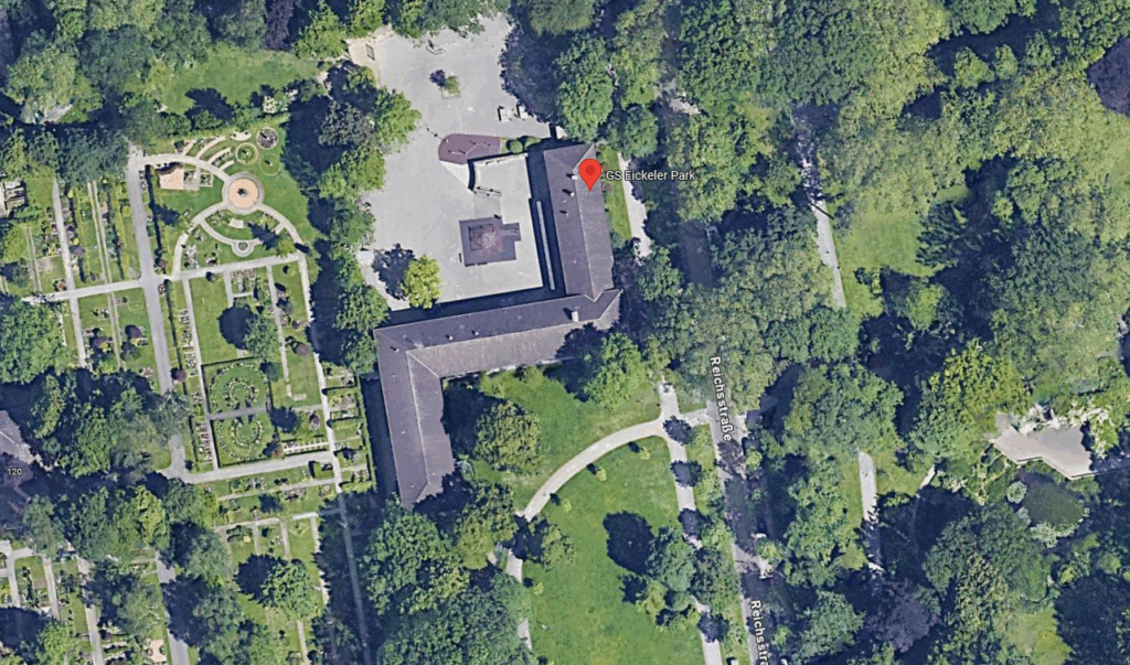 Nomen est omen — Sie finden uns im kleinen, aber schönen Eickeler Volksgarten, also mitten im Grünen, wie auf dieser GoogleMaps-Luftbildaufnahme zu sehen ist.